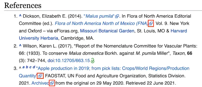 برای مثال، میتوانید به پایین هر پست ویکیپدیا بروید و ببینید که اکثر پیوندهای بخش مراجع دارای نماد پیوند خارجی هستند.