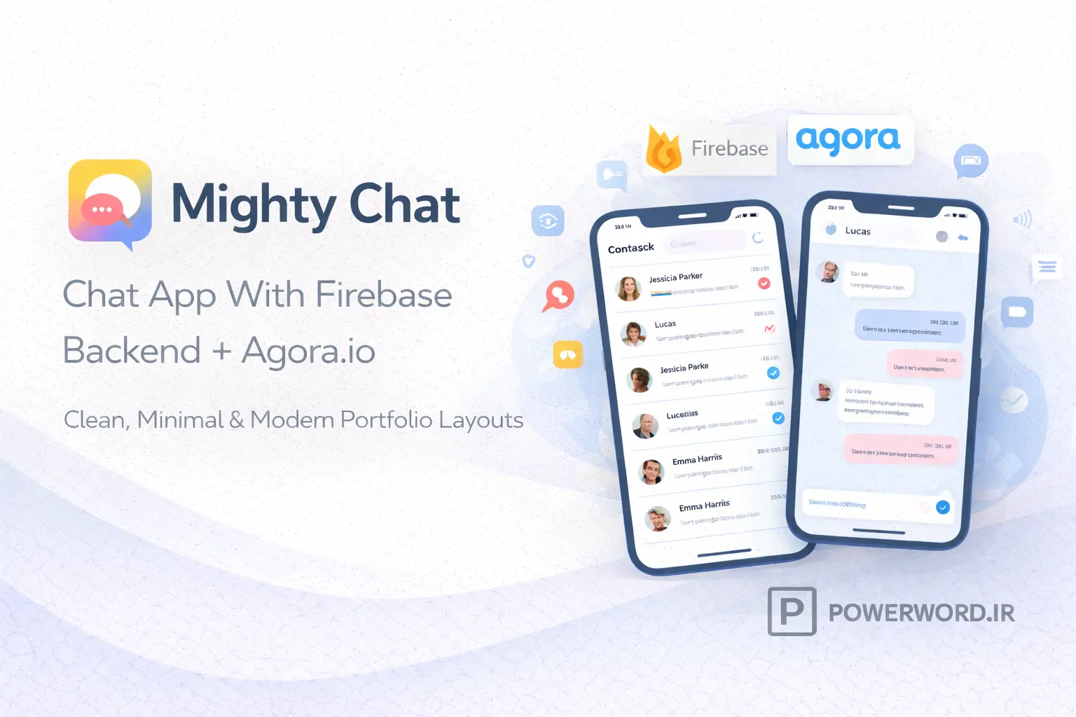 Mighty Chat یک اسکریپت اپلیکیشن چت با بکاند Firebase و ارتباط صوتی و تصویری Agora.io است.