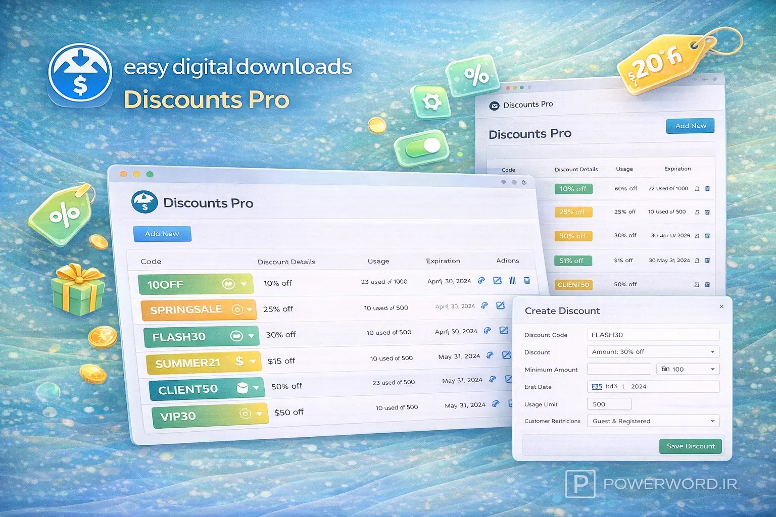 Easy Digital Downloads Discounts Pro یک افزونه برای مدیریت پیشرفته تخفیفها در فروشگاههای مبتنی بر EDD است.
