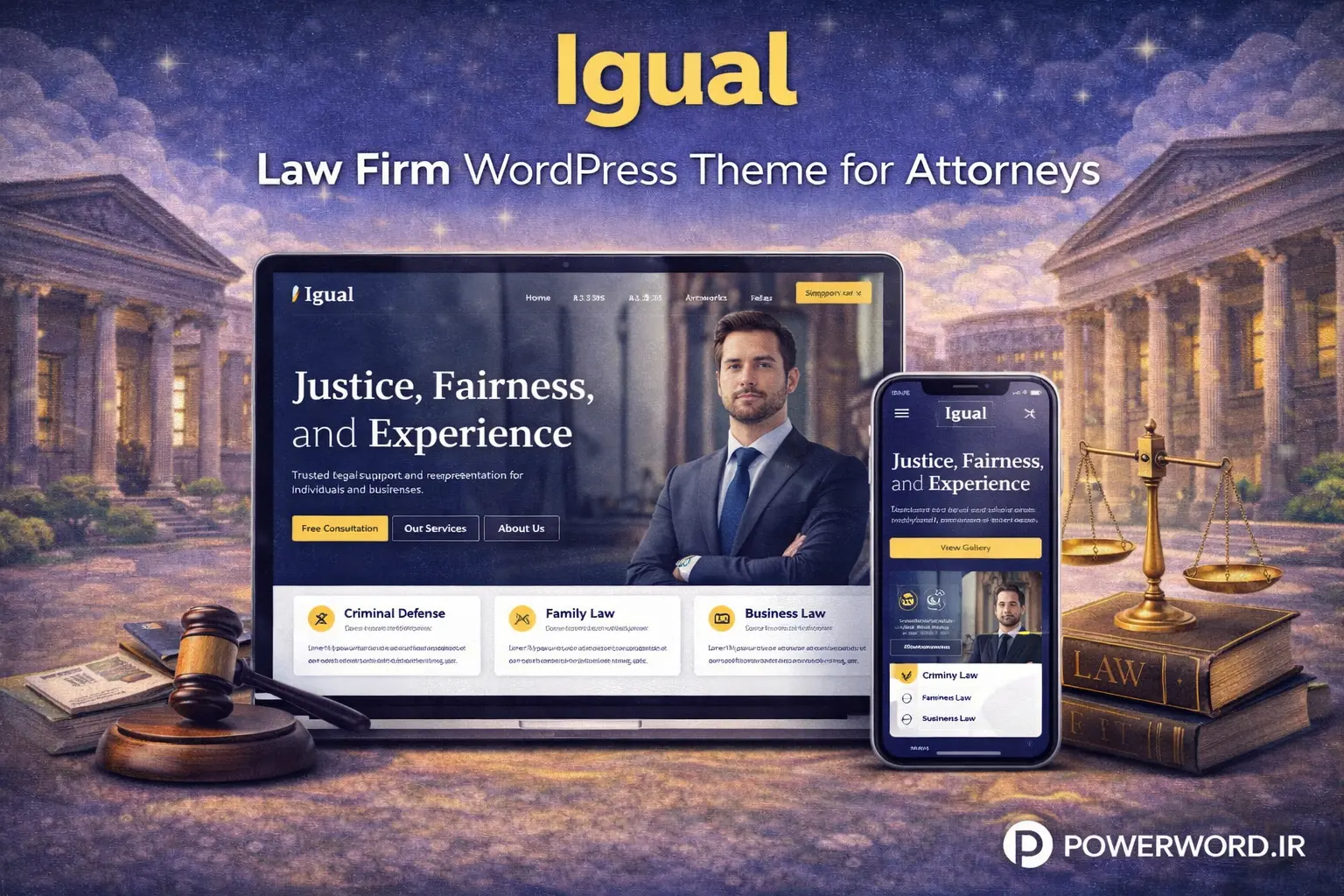 Igual یک قالب وردپرس مخصوص دفتر وکالت و وکلای حرفهای است.