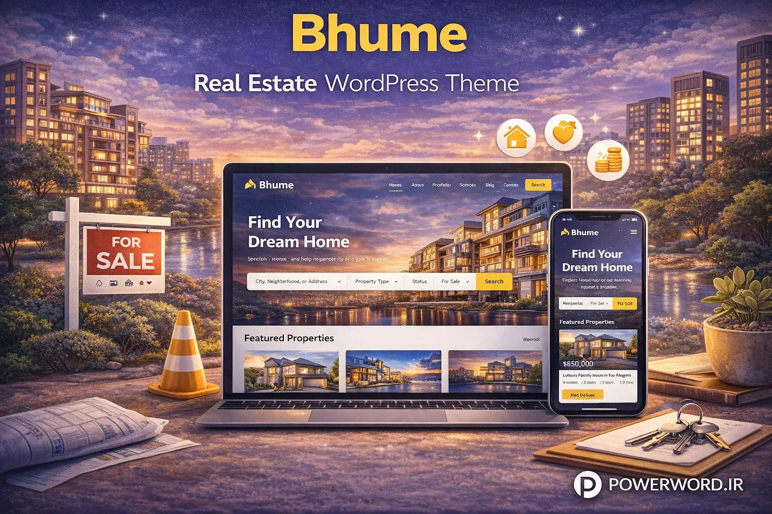 Bhume یک قالب وردپرس مخصوص مشاوران املاک، آژانسهای ملکی و پروژههای خرید و فروش ملک است. این قالب طوری طراحی شده که اطلاعات ملک واضح، قابل مقایسه و قابل اعتماد نمایش داده شوند، بدون اینکه کاربر در جزئیات گم شود.