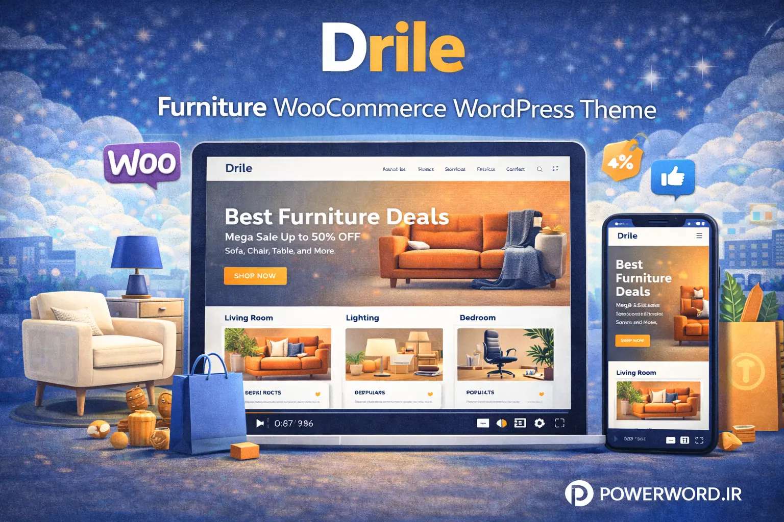 Drile یک قالب وردپرس ووکامرس مخصوص فروش مبلمان و دکوراسیون داخلی است.